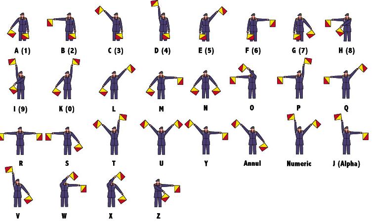 Ce système est encore utilisé pendant le réapprovisionnement en mer et est acceptable pour la communication d'urgence dans la lumière du jour ou en utilisant des baguettes lumineuses au lieu de drapeaux, la nuit.